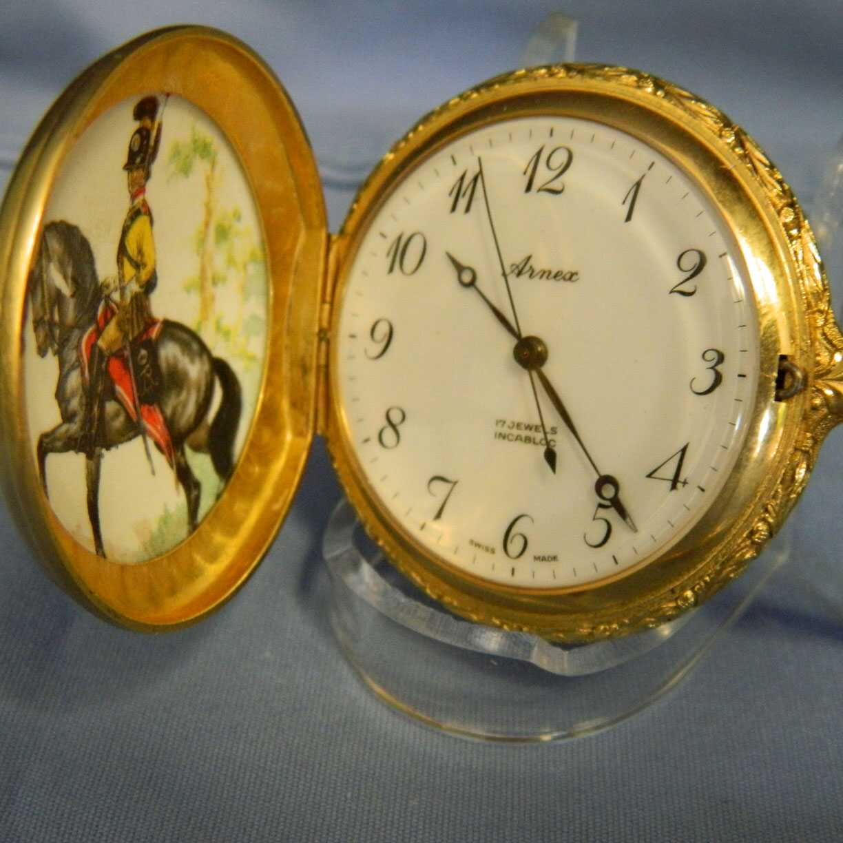 ARNEX HUNTER ENAMEL ENGLISH SOLDIER INSERTS ON CASE 17 JEWEL