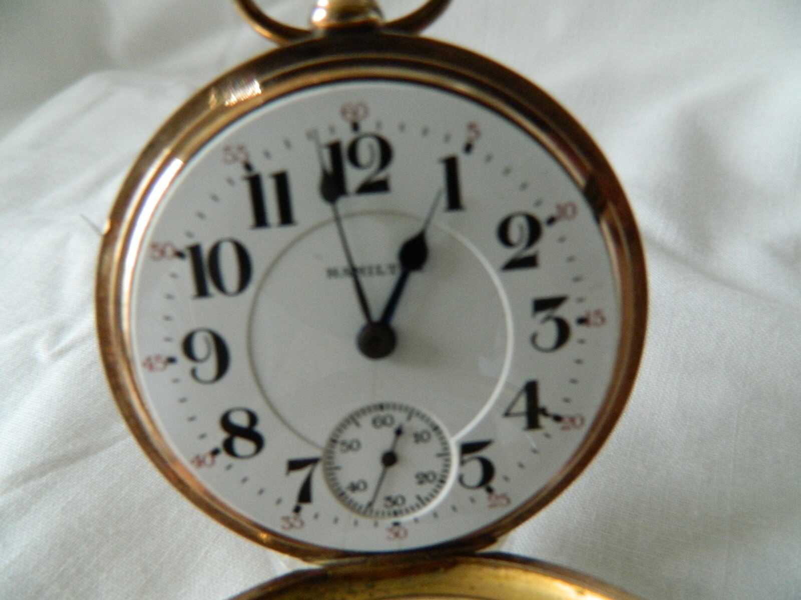 Hamilton Triple Hinge Open Face Case 10K Gold Filled 21 Jewels Pocket Watch w/Porcelain Dial includes Gold Tone Watch Fob